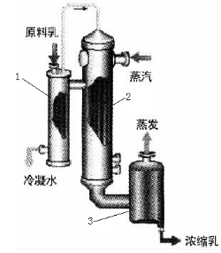 乳品廠中使用的蒸發器都是非循環型的,物料在蒸發器內經過一次加熱、汽化和分離,離開時即達到要求的濃度。料液一般不打循環,在加熱器內停留時間短,這對熱敏性物料的蒸發有利。這類蒸發器加熱室中液體多呈膜狀流動,因此又通稱為膜式蒸發器。