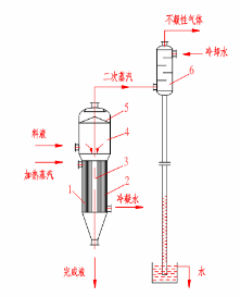 管內的液膜下降的三個動力:一是物料本身的重力;二是在蒸發器頂部的物料由于超沸點進料所產生的大量的二次蒸汽向下的沖力;三是蒸發器下部的真空度較大。