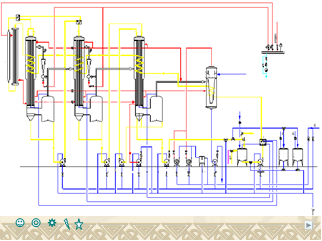 經預熱、殺菌、保溫后的物料超沸點進入一效蒸發器,經液體分布器均勻分布到各個加熱列管內,借重力和二次蒸汽作用在管內呈膜狀向下流動,同時與管外的加熱蒸氣進行熱交換而蒸發。物料與二次蒸汽沿切線方向進入分離器,汽液分離后用物料泵泵入二效蒸發器蒸發后,再泵入三效蒸發器,三效蒸發器中屬于雙程蒸發。隨著蒸發的進行,物料濃度的增加,物料逐漸減少。物料進入三效蒸發器采用雙程蒸發提高了流速,增大了傳熱效果。物料達到要求濃度后由出料泵排出。